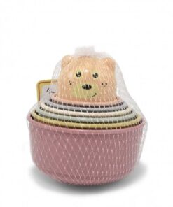 A csomagban 7 db különböző méretű és színű pohárka található, a legkisebb egy kis macifejet ábrázol.