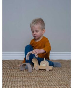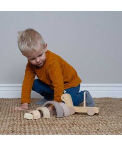 Aranyos, fából készült húzható csiga babajáték, melynek háza egy egymásra építhető szivárvány. A szivárvány elemeivel külön-külön, vagy egymásra rakható játékként is lehet játszani. Például egyes részeiből izgalmas alagutak vagy hidak építhetők a kedvenc autókkal történő játékhoz!