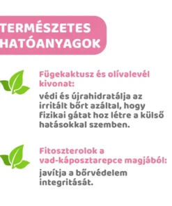 Nyugtató, védő hatóanyagok a fügekaktusz és olívalevél kivonatokból állnak, megőrizve a bőr épségét.