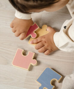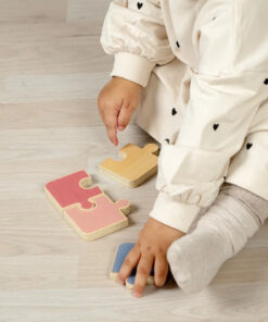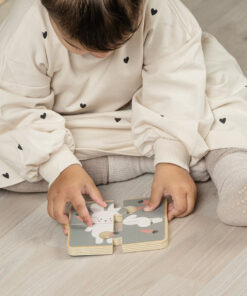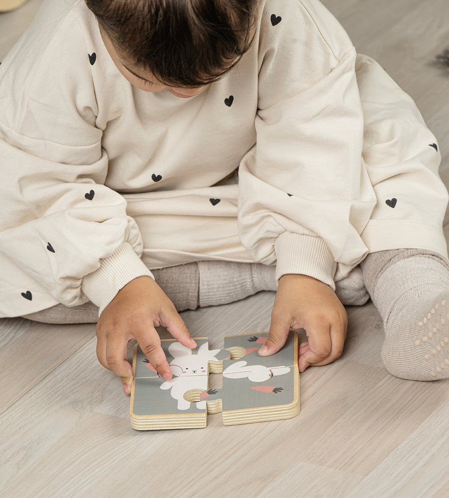 Kirakós játék: Kétoldalas puzzle, amelynek mindkét oldala különböző témájú, így sokoldalú játékélményt nyújt, Az egyik oldalon egy színes puzzle, a másikon pedig egy nyúl puzzle található,