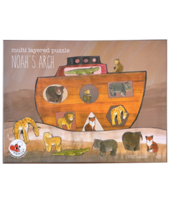 Imádnivaló többrétegű puzzle fejlesztő játék, amely szórakozást és tanulást kínál a legkisebbeknek. A puzzle rétegei egymásra épülnek, így a gyerekek játék közben fedezhetik fel Noé történetét és az állatokat, akik vele utaztak a bárkán. Minden réteg egy-egy új képet rejt, melyek összeillesztésével a gyermekek fejlesztik a finommotorikus készségeiket, a logikai gondolkodásukat és a figyelmüket. Kiváló minőségű, környezetbarát anyagokból készült, így biztonságos és tartós játék, mely remek választás a kisgyermekek számára.