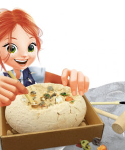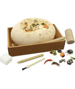 A csomag tartalma: 1 óriástojás, 1 kalapács, 1 véső, 1 ecset, 1 szivacs, 1 tálca, 4 dinoszaurusz kártya.