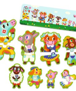 <li>8 db különböző méretű, állatos kirakós játék</li>