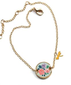 Sétálj egy elbűvölő kertben ezzel a csodálatos nyaklánccal! Az akrilgyöngyökből álló Camélia láncán 5 medál található: 2 levél, 2 kisvirág, 1 nyuszi. A dupla gumizsinórnak köszönhetően a lánc tartósabb és kapocs nélkül használható. Minőségi zománcozott fém medálok.