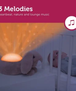A zenélő kivetítő varázslatos csillagos égbolttá változtatja a gyerekszobát és aláfestésül nyugtató dallamot játszik.