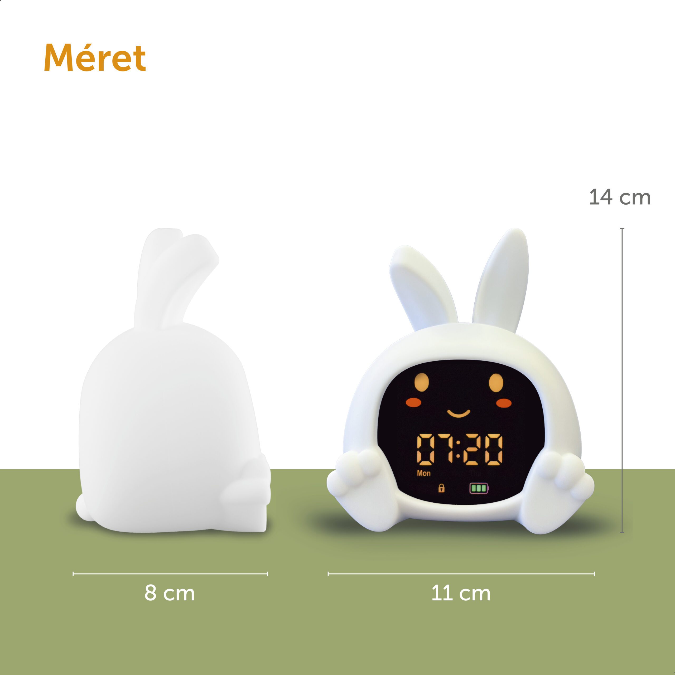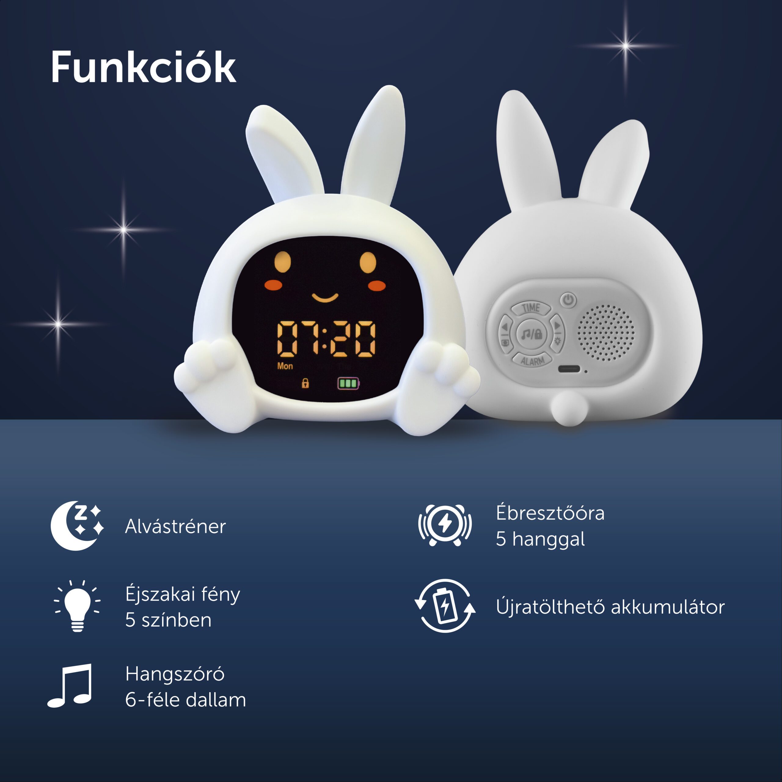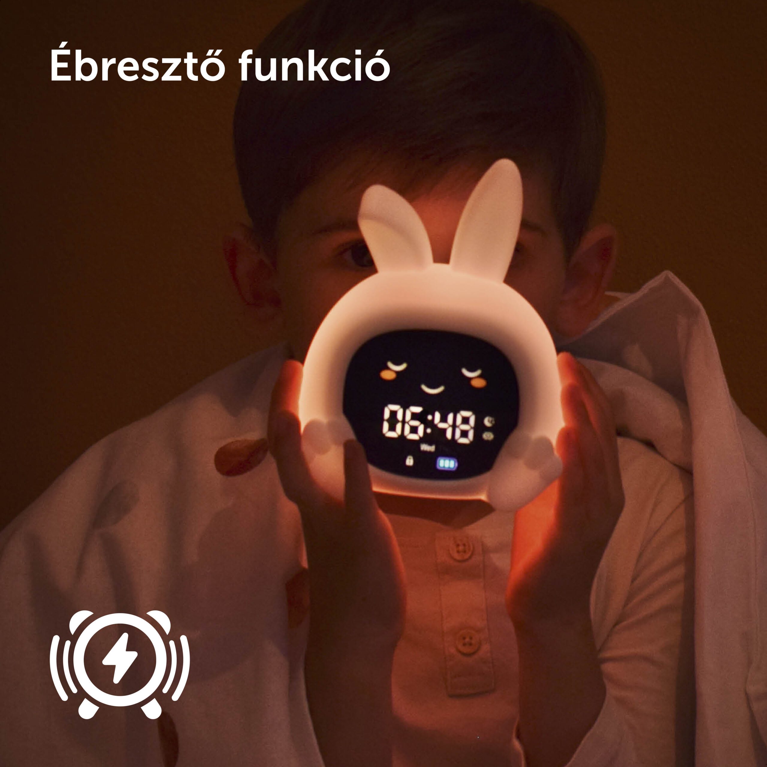 Sarah nyuszi alvástréner segít a gyerekeknek megérteni, mikor van itt az alvás ideje, és mikor szabad felkelni. Színes fényjelzésekkel, mozgó szemekkel, éjszakai fénnyel és megnyugtató hangokkal támogatja a nyugodt lefekvési rutint.