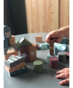 A készlet 49 blokkból áll, gyönyörű színekben, 7 különböző alakban és tartalmaz egy szövet tároló táskát is.
