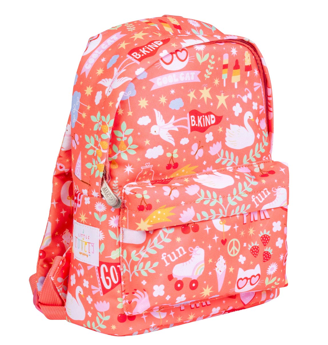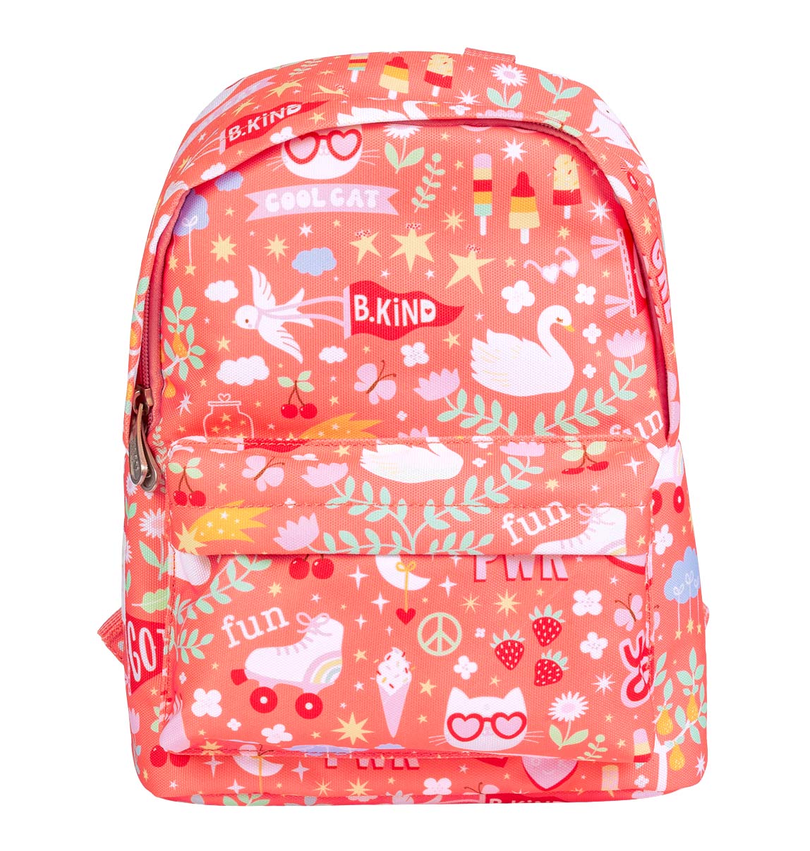 Ez a szuper cuki kicsi hátizsák tökéletes választás a bölcsis és ovis gyerekek számára. A könnyű hátizsák fő rekeszében elfér az uzsonnás doboz, játék, kis könyv, az alvós plüss. A hátizsák dupla cipzárral záródik. Az elülső csatoknak köszönhetően az állítható vállpántok nem mozdulnak el, mindig a vállon maradnak. A tetején lévő fogantyúval kézben is vihető. Ez egy ideális hátizsák az első évekre.
