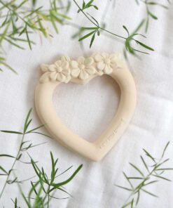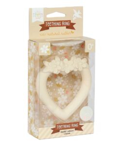 Ez a szép SZÍV alakú rágóka ideális kis barát a fogzás idején, tökéletes a kicsi fogaknak. Fejleszti a baba látását, tapintását, szaglását. Gyűrűs kialakításának köszönhetően könnyen megfogható. Hevea (kaucsuk) gumifából származó 100% -ban természetes gumiből készül, nem tartalmaz káros anyagokat és finom illatú. A rugalmas rágóka kiváló az íny masszírozására és fogzás körüli fájdalmak enyhítésére. Díszcsomagolásának köszönhetően tökéletes ajándéknak is.