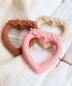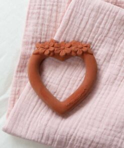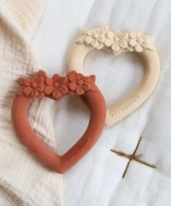 Ez a szép SZÍV alakú rágóka ideális kis barát a fogzás idején, tökéletes a kicsi fogaknak. Fejleszti a baba látását, tapintását, szaglását. Gyűrűs kialakításának köszönhetően könnyen megfogható. Hevea (kaucsuk) gumifából származó 100% -ban természetes gumiből készül, nem tartalmaz káros anyagokat és finom illatú. A rugalmas rágóka kiváló az íny masszírozására és fogzás körüli fájdalmak enyhítésére. Díszcsomagolásának köszönhetően tökéletes ajándéknak is.