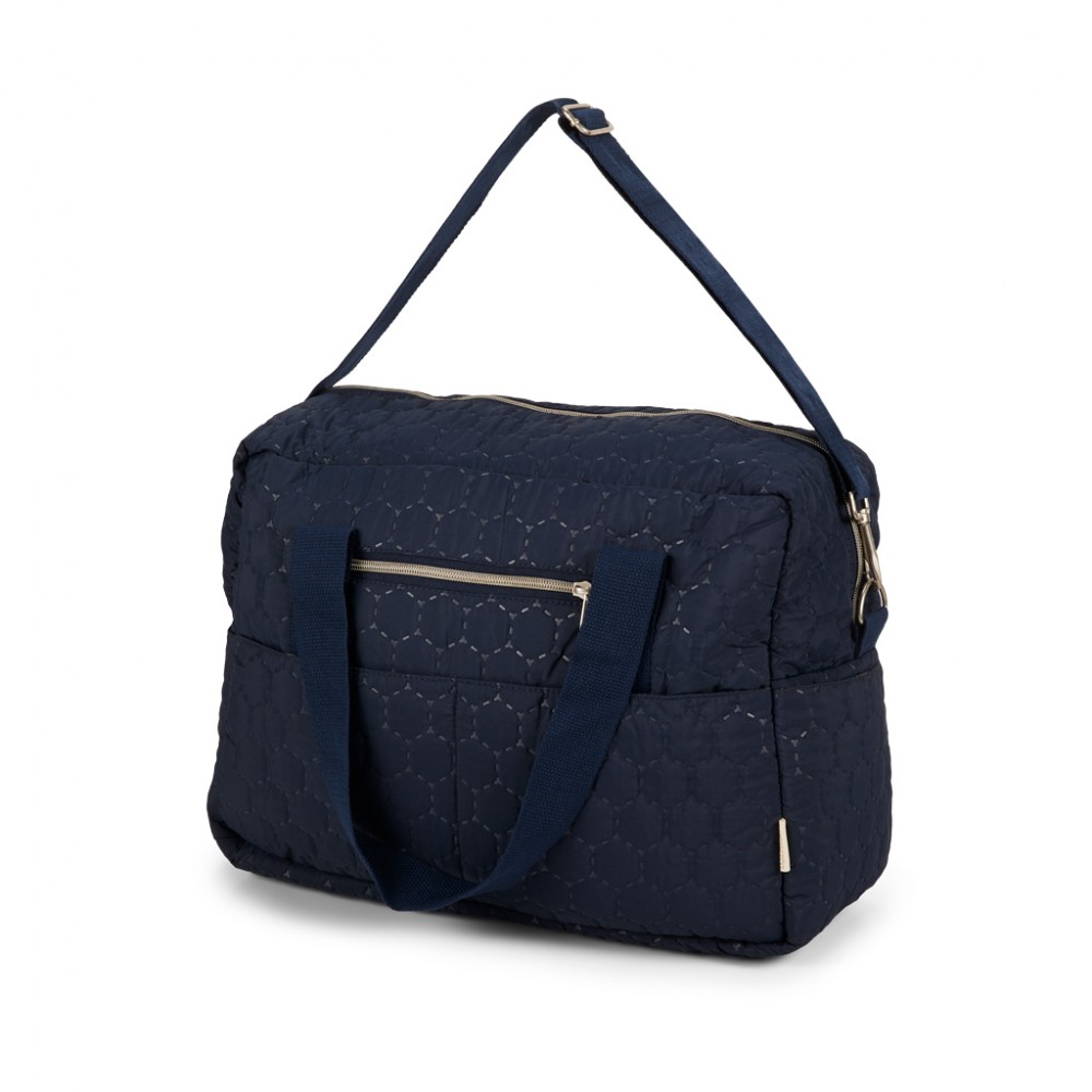 A NUUROO pelenkázótáska a tökéletes választás mindennapi használatra. Ez a sötétkék színű, divatos és praktikus táska nem csak pelenkázótáskaként funkcionál, hanem anyuka táskaként vagy hétvégi táskaként is tökéletes. Számos zsebével és tágas belső terével minden szükséges holmit kéznél tarthat. A 100%-ban újrahasznosított poliészterből készült táska erős és állítható pántokkal rendelkezik, így babakocsira is akasztható, vagy akár vállon is hordható. Méretei (29 x 39 x 19 CM) lehetővé teszik, hogy mindent magával vihessen, amire szüksége lehet. Dánia származási helyű táskánk nem csak stílusos, de a mindennapjait is egyszerűbbé teszi.