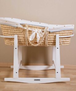 Hintaállványunknak köszönhetően a baba gyengéden álomba szenderülhet a Mózeskosárban. A könnyű fa miatt az állványt nagyon könnyű mozgatni, így napközben bárhová elhelyezheted, éjszaka pedig akár az ágy mellé. Fenyőfából készült. A hintaállvány minden Mózeskosárral kompatibilis.