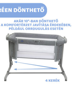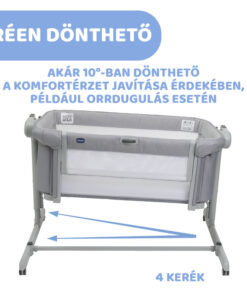 Ha hagyományos bölcsőként használjuk, a Chicco Next2Me Magic Evo ringató funkcióval is rendelkezik a baba finom ringatásához.