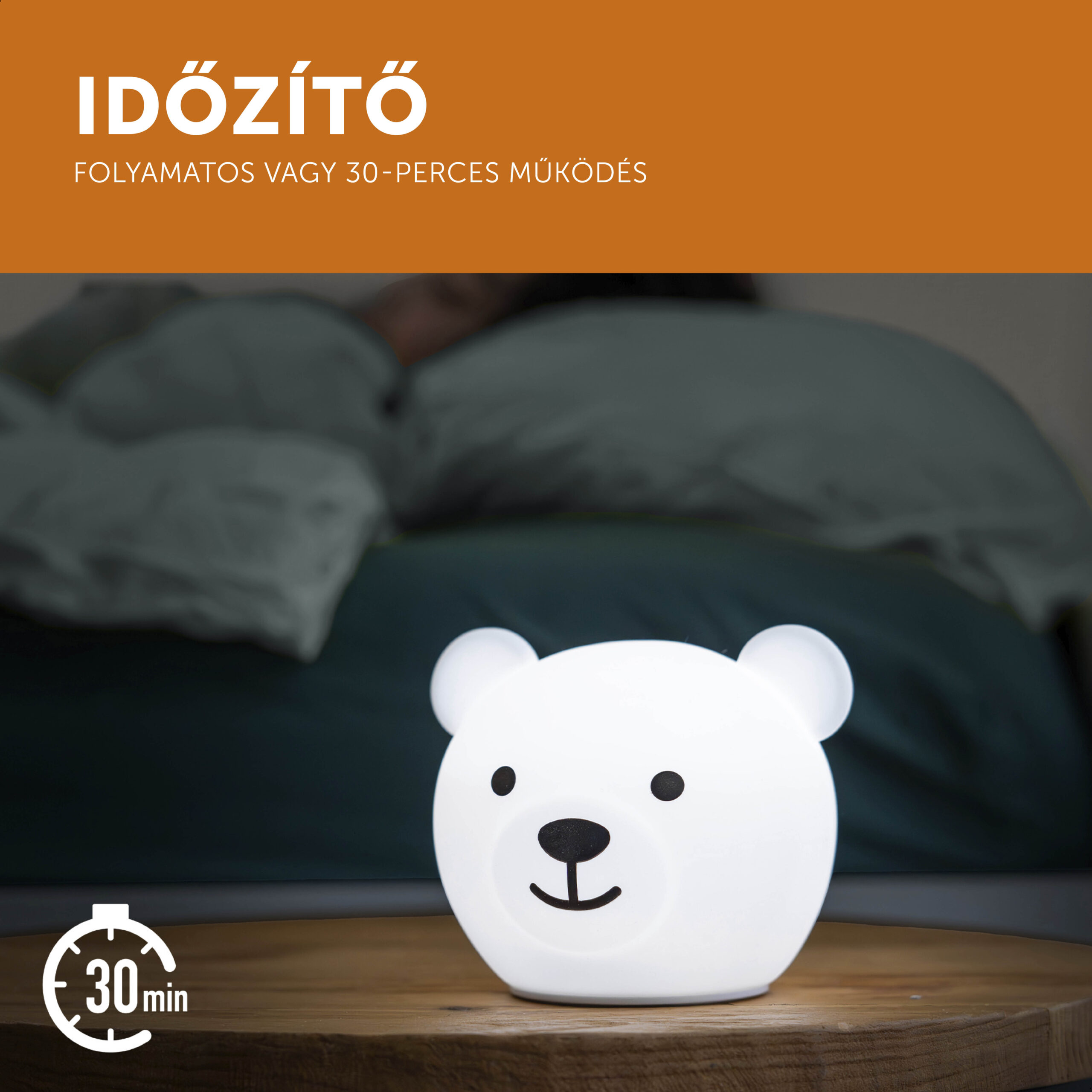 A fény 30 perc után automatikusan kikapcsol, vagy folyamatosan világít, amíg le nem kapcsolod.