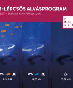 A teljes program 30 percet vesz igénybe, utána automatikusan kikapcsol. A kicsi szobáját varázslatos víz alatti világgá változtathatja mozgó hullámok és úszó halakkal, pihentető óceánhang lejátszása közben.