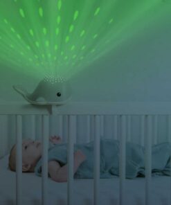 Wally a bálna vízcseppeket vetít a mennyezetetre, 4 különböző színben: piros, kék, zöld vagy többszínű.
