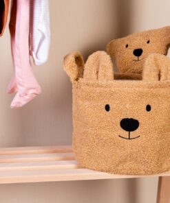 Ez a tündéri Teddy tárolókosár alkalmas játékok, ruhák és egyéb dolgok tárolására. A kosárkát ideális mérete miatt akár egy kis szekrényre is elhelyezheted, így egyszerre praktikus és trendi elem a gyerekszobában. A puha szövet és a tüneményes mackó fülek azonnal vidám hangulatot varázsolnak a szobába. A kosár praktikus belső béléssel rendelkezik, amely nedves ruhával is könnyen tisztítható. Figyelem! A kosárka nem játék, csak dekorációként vagy tárolókosárként használd!