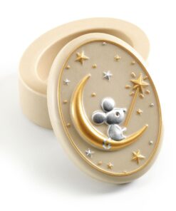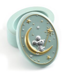 <p style="text-align: justify;">Ez a tejfog tárolódoboz tökéletesen illeszkedik a gyermek szobájába. Szilikon tömítése van a doboztetőn, hogy a fedél megtapadjon és zárva maradjon. Bájos gyermekmondóka illusztrációja van a fedelén, mesés, ezüst és arany hatású csillogó színekkel. Ez a doboz tökéletesen mutat a gyermek szobájában. Olyan dekoratív, mint egy kis ékszertartó doboz. A mondókát mindenki ismeri? </p>