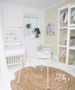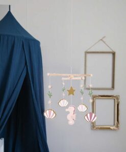 Aranyos, fából készült kiságyforgó, melyen imádnivaló tengericsikók láthatók.
