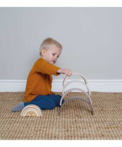 Aranyos készségfejlesztő szivárvánnyal toronyépítő játék, melynek középső elemén egy kedves kis maci arca látható. A játék elemeivel külön-külön is játszhatnak a gyerekek vagy akár egymásra is pakolhatják azokat, így egy nagy tornyot hozhatnak létre. Az elemekből továbbá izgalmas alagutakat vagy hidakat lehet építeni a kedvenc autókkal történő játékhoz! A használatához csak a gyermeki képzelet szab határt.