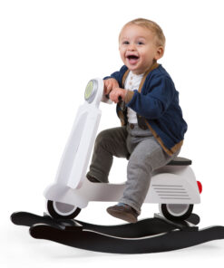 Ez a tüneményes vespa hintaló sok örömöt fog okozni a gyermekednek. A gyerekek imádnak előre-hátra hintázni! Ez a tökéletes módja annak, hogy gyermeked megtanulja az egyensúlyozást és a koordinációt. Az kis robogó tökéletesen illik a gyerekszobába vagy a nappaliba.