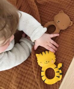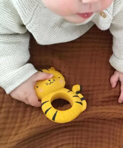 Hevea (kaucsuk) gumifából származó 100% -ban természetes gumiből készül, nem tartalmaz káros anyagokat és finom illatú. A rugalmas rágóka kiváló az íny masszírozására és fogzás körüli fájdalmak enyhítésére. Díszcsomagolásának köszönhetően tökéletes ajándéknak is.