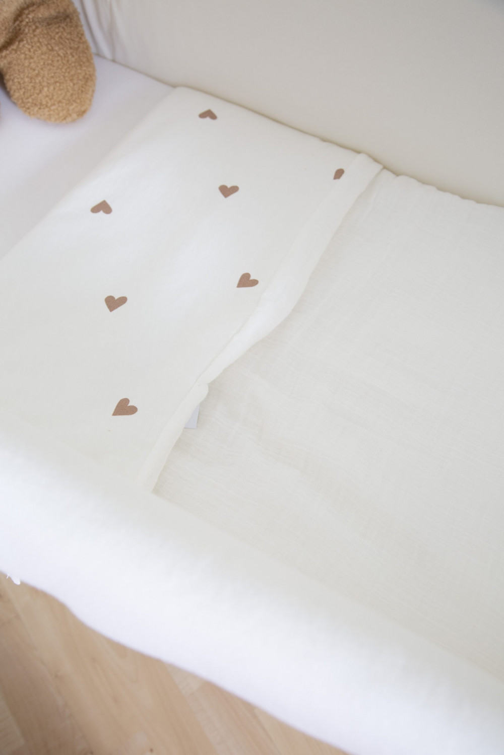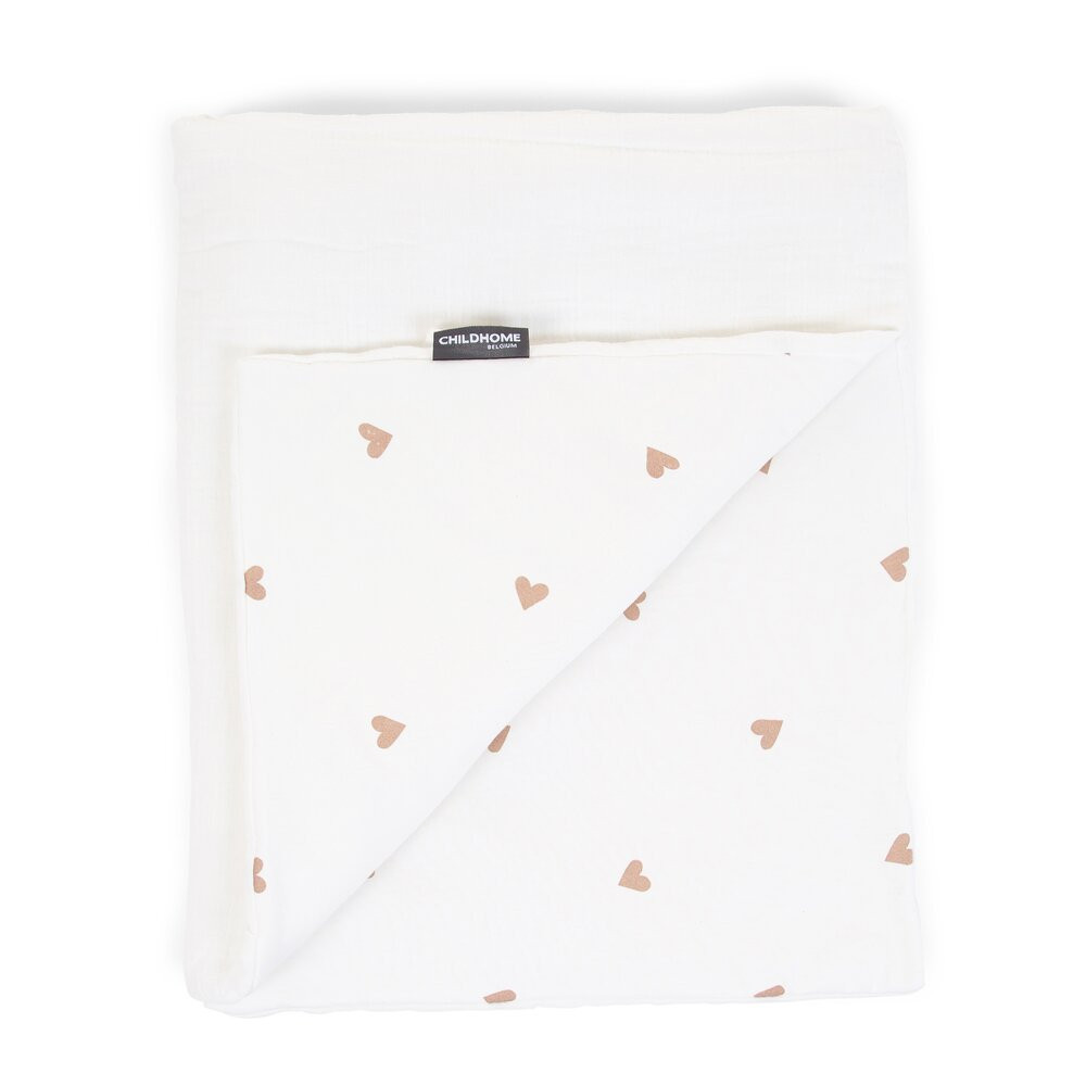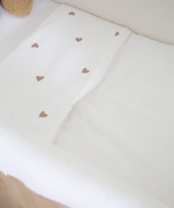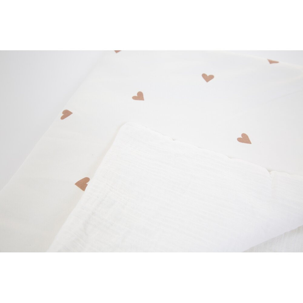 Takargasd be gyermeked ezzel az ultra-puha takaróval a Szivecskés kollekcióból. Meleg és otthonos környezetet biztosít szemed fényének szunyókálás alatt. Vidd magaddal a takarót a kicsi első kalandjaira, vagy akár helyezd el a gyerekszobában és tedd stílusossá. A takaró mindkét oldala egyaránt használható; az egyik oldala fehér, a másik oldala pedig aranyos kis szivecskékkel díszített.