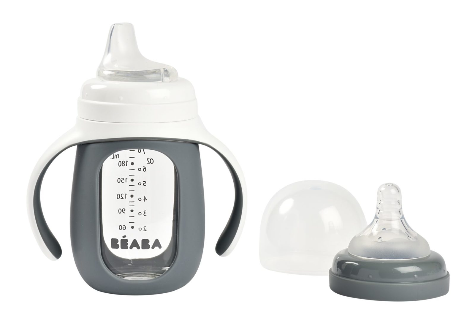 2 az 1-ben: szilikonból készült cumisüveg szívócső az átmenet és a tanulás elősegítésére, 2 cumisüveg fejjel, hogy könnyen cserélhető legyen.