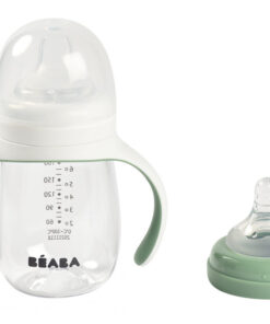 2 az 1-ben: szilikonból készült cumisüveg szívófej és rugalmas cső az átmenet és a tanulás elősegítésére, 2 cumisüveg fejjel, melyek könnyen cserélhetők.