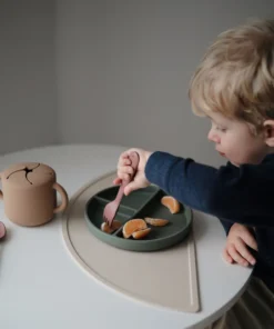 A csúszásmentes lapostányér kiválóan tapad minden felülethez az alján található tapadókoronggal. Osztott formájának köszönhetően az ételek nem keverednek, így nagyszerű segítség az önálló étkezés megkezdéséhez.