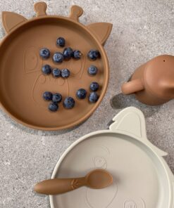 Fedezzétek fel a NUUROO szilikon lapostányér dupla csomagját, melyek aranyos zsiráf mintával ékeskednek. Varázsoljatok az étkezésekből vidám pillanatokat ezekkel a tányérokkal, melyek nemcsak praktikusak, de a gyerekek számára is szórakoztatóak. Készüljetek fel az önfeledt evésre, hiszen ezek a tányérok a padlóra esve sem törik el, hála a puha, mégis strapabíró szilikon anyagnak. Ráadásul, könnyen tisztíthatóak, hiszen mosogatógépben is moshatóak. Mindezeken felül, a tányérok LFGB-tanúsítvánnyal rendelkeznek, ami garantálja, hogy káros vegyszerek nélkül készültek. A csomagban két 17×4 cm méretű tányér található, amiket Dániában gyártottak. Karamell színük pedig bármelyik konyhában jól mutat majd!