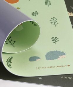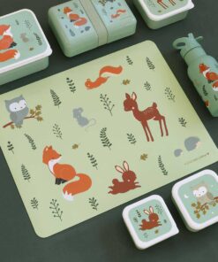 Tányéralátét gyönyörű erdeibarátok-mintával. Az alátét funkcionális és praktikus, étkezés közben és kézműves tevékenységekhez is használható. Csúszásmentes hátlappal rendelkezik, amely extra biztonságot