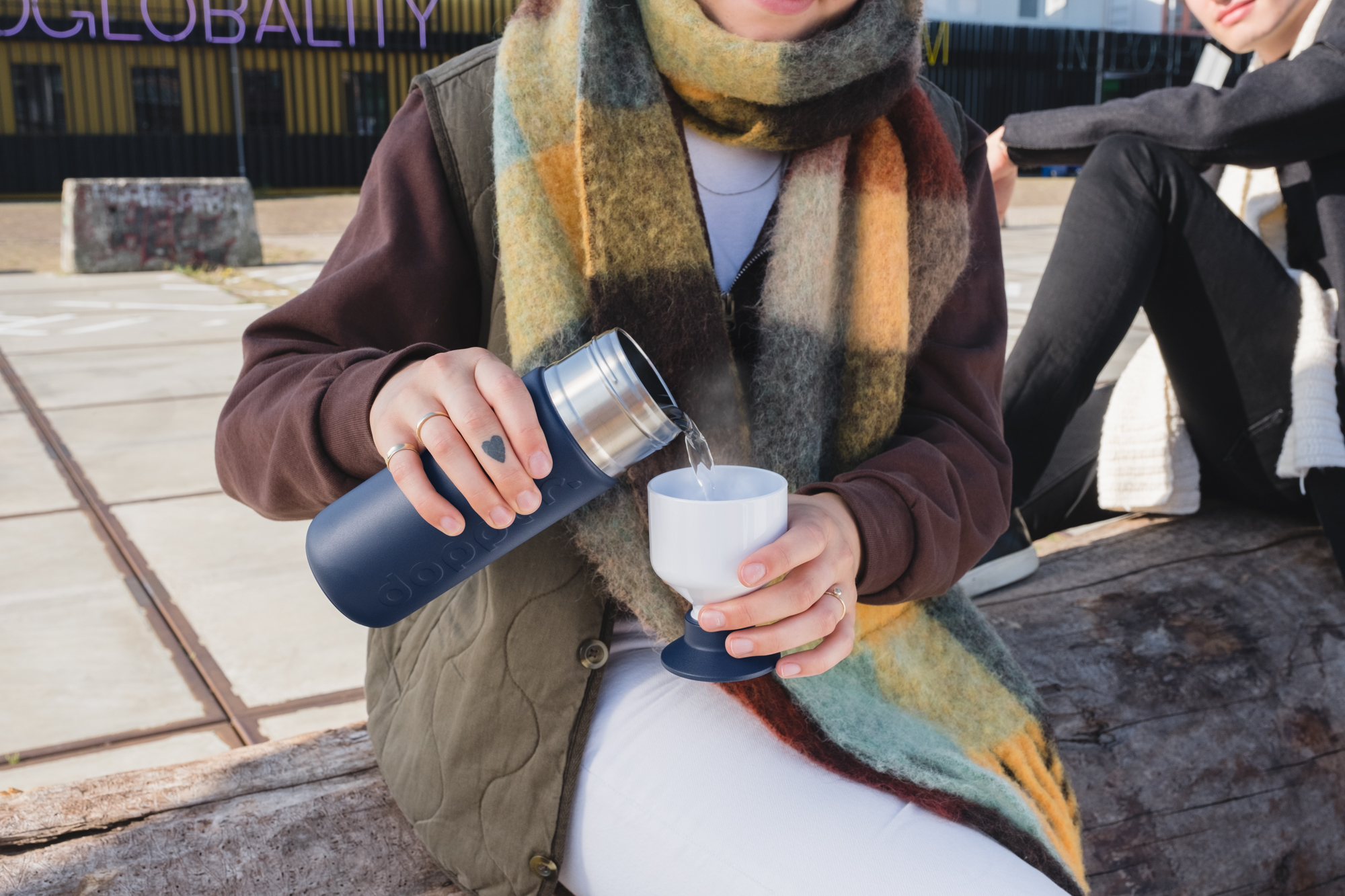 A karcálló, rozsdamenetes acélból készült Dopper termosszal mindig lehet nálad ideális hőmérsékletű – hideg vagy meleg – csapvíz, időjárástól függetlenül. A termosz 9 órán át melegen, vagy 24 órán át hidegen tartja a vizet, a teát és a kávét, használatával pedig egész évben óvod az óceánokat.