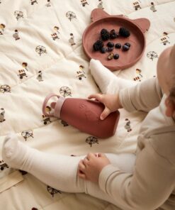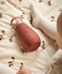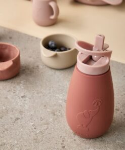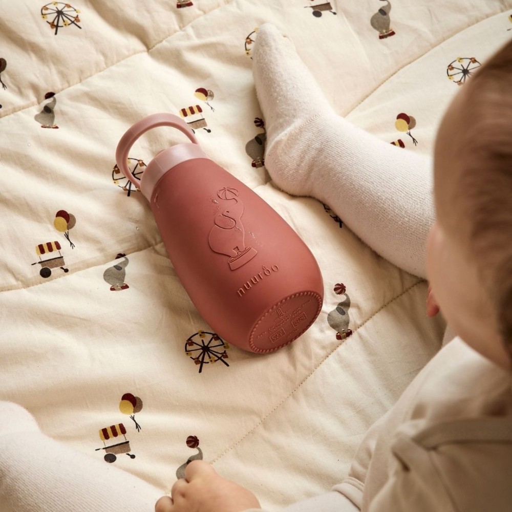 Ivópalack egy cirkuszi elefánt aranyos képével. A palack 100% LFGB szilikonból készül, amely káros vegyi anyagoktól mentes és élelmiszerekhez engedélyezett. A fedél műanyagból készül, és szorosan illeszkedik a palackhoz.