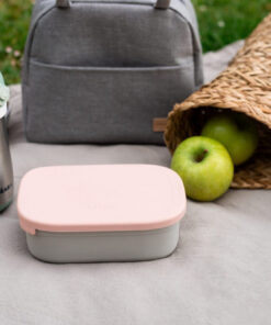 Rozsdamentes acél doboz védőfedéllel és szilikon fedéllel, ideális főttételek vagy rágcsálnivalók szállítására._x005F_x000D_