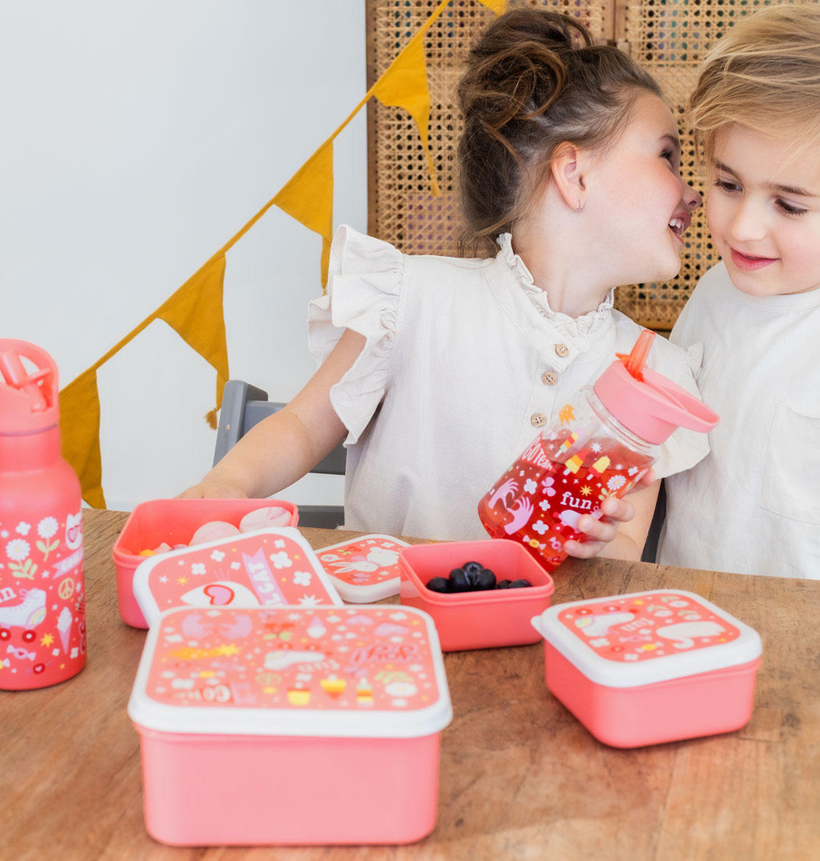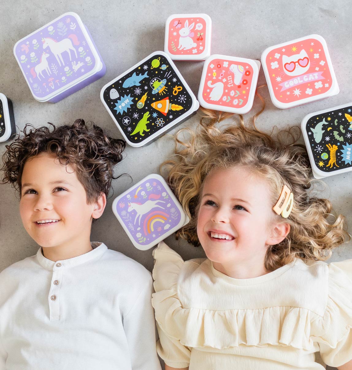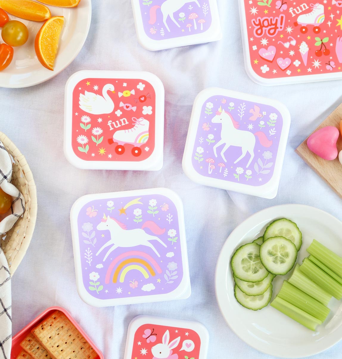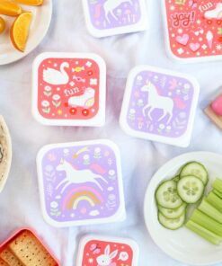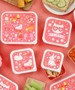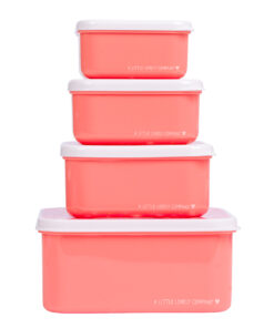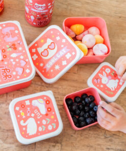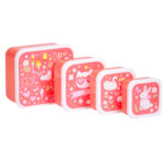4 darabos uzsonnásdoboz-készlet, mely alkalmas iskolába, utázáshoz, szendvicsek, gyümölcsök, sütemények, kekszek, rágcsálnivalók tárolására, de akár a gyerekszoba kincsei elrejtésére is tökéletesek. A fedél oldalán található kis peremnek köszönhetően könnyen nyithatók és zárhatók, a 4 különböző doboz pedig egymásba helyezhető a hatékony tárolás érdekében.