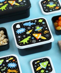 4 darabos uzsonnásdoboz-készlet, mely alkalmas iskolába, utázáshoz, szendvicsek, gyümölcsök, sütemények, kekszek, rágcsálnivalók tárolására, de akár a gyerekszoba kincsei elrejtésére is tökéletesek. A fedél oldalán található kis peremnek köszönhetően könnyen nyithatók és zárhatók, a 4 különböző doboz pedig egymásba helyezhető a hatékony tárolás érdekében.
