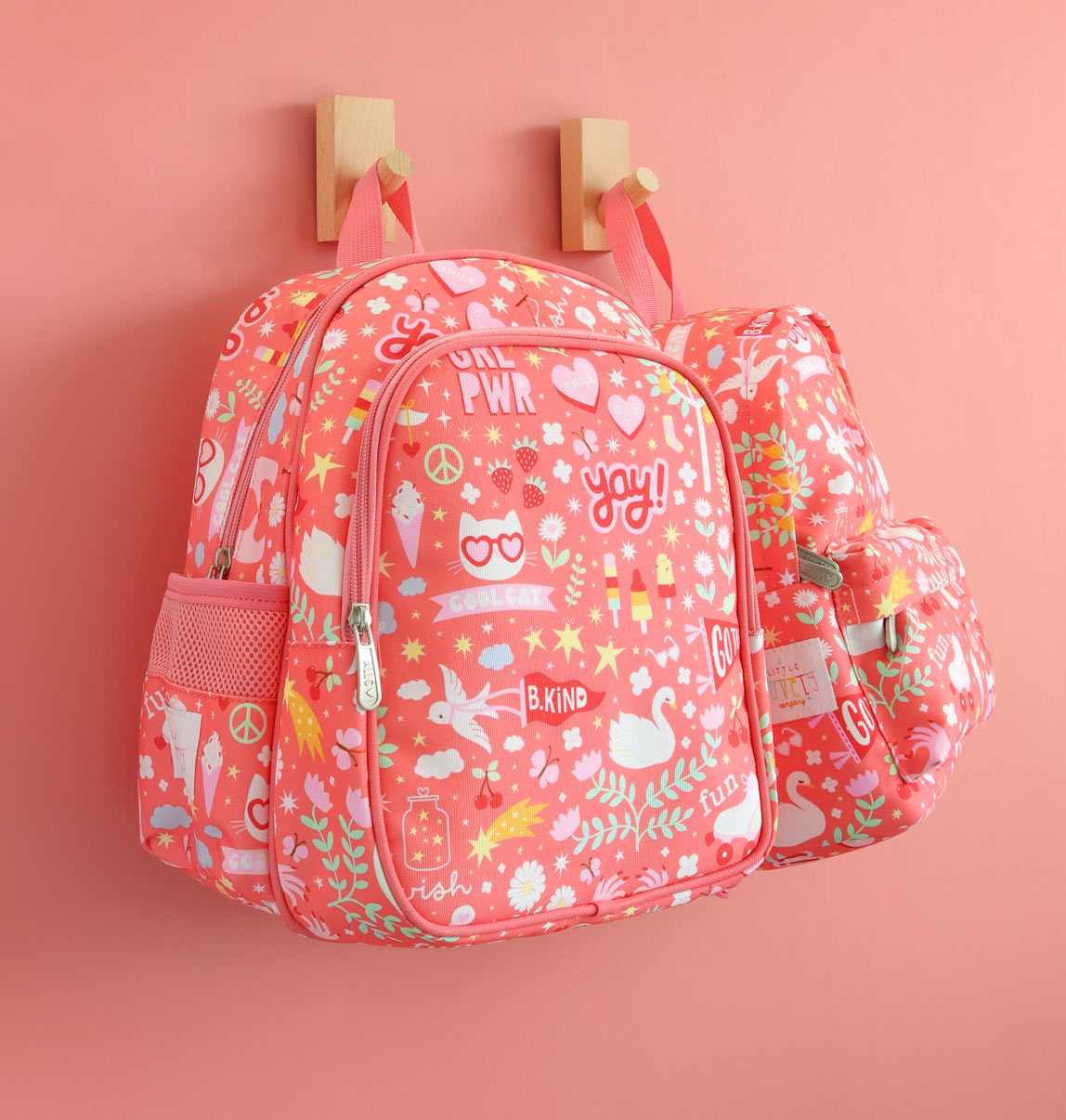 Ez a vidám mintájú hátizsák kiváló választás a gyerekeknek óvodába, iskolába vagy kirándulásra. A hátizsák fő rekesze elég nagy a könyveknek, az uzsonnás doboznak vagy akár ruháknak egy barátos ottalváshoz. A hőszigetelt elülső zseb biztosítja, hogy az ételek és italok hidegen vagy meleg maradjanak. A kényelmes oldalsó zsebekbe elfér a termosz és a kulacs is. A hátlap extra töltettel és légáteresztő réggel lett ellátva, az extra kényelem érdekében. Az elülső csatnak köszönhetően az állítható vállpántok nem mozdulnak el, mindig a vállon maradnak.