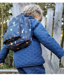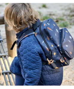 A hátizsák különlegessége, hogy 100%-ban újrahasznosított poliészterből készült, így választásával nem csak a gyermekét, de a környezetet is óvja. A hátizsák hát része párnázott a kényelmes viseletért, a mellkasnál pedig összecsatolható, hogy a kicsik számára is stabil, biztonságos legyen a hordás.