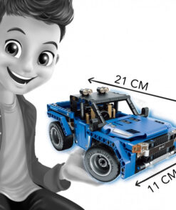 Kétféleképpen összeépíthető, távirányítható autó, amely 353 elemből áll. Az autó mind a 4 irányba képes mozogni: előre/hátra/jobbra és balra.