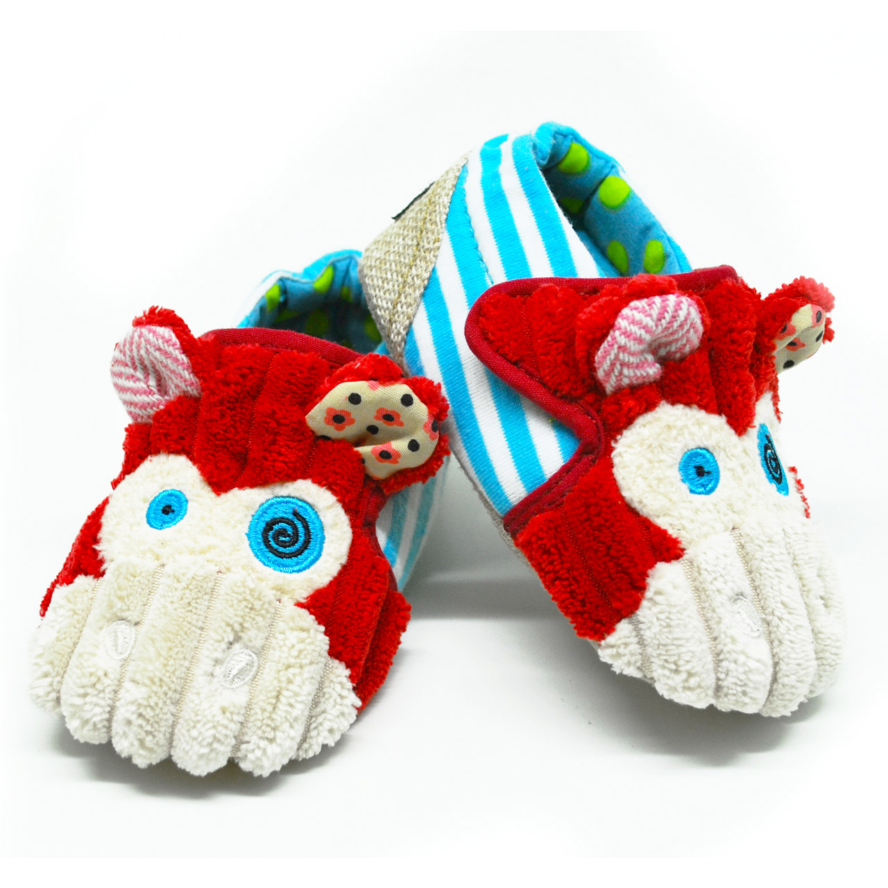 A korai fejlesztőjáték és a lábbeli innovatív keveréke csecsemőknek és kisgyermekeknek. Tökéletesen serkenti a gyermek megfigyelés és mozgás fejlődését. Extra kényelmet biztosít az erősített sarok és csúszásmentes, puha talp kialakítással. A nyílása elől és hátúl tépőzárral van ellátva, igy a ficánkoló gyermekre is könnyedén feladható. Ideális ajándék, a kis tipegőknek vagy korai sétálgatóknak!