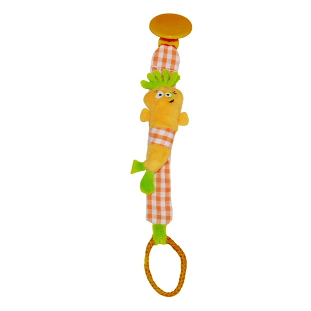 A Funky Garden bababarát termékcsalád tagja. Puha anyagból készült répafigurás cumitartó, vidám színekkel.