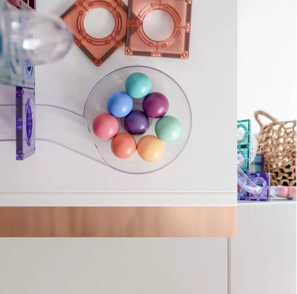 A Connetix pasztell fagolyó csomag 16 darab varázslatos, finom árnyalatú golyót tartalmaz, amelyek tökéletesen illenek a Connetix golyópályákhoz. Ez a kiegészítő szett lehetővé teszi, hogy mindig legyen kéznél elegendő golyó a játékhoz, akár a pályák bővítéséhez, akár új színes kombinációk kipróbálásához.