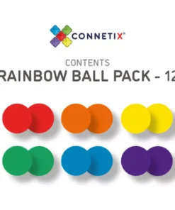 A Connetix 12 darabos szivárvány fagolyó csomag tökéletes kiegészítője minden mágneses golyópályának. A készlet minden színből két golyót tartalmaz, így mindig elegendő elem áll rendelkezésre a pályák bővítéséhez, új kombinációk kipróbálásához vagy a játék színesítéséhez.
