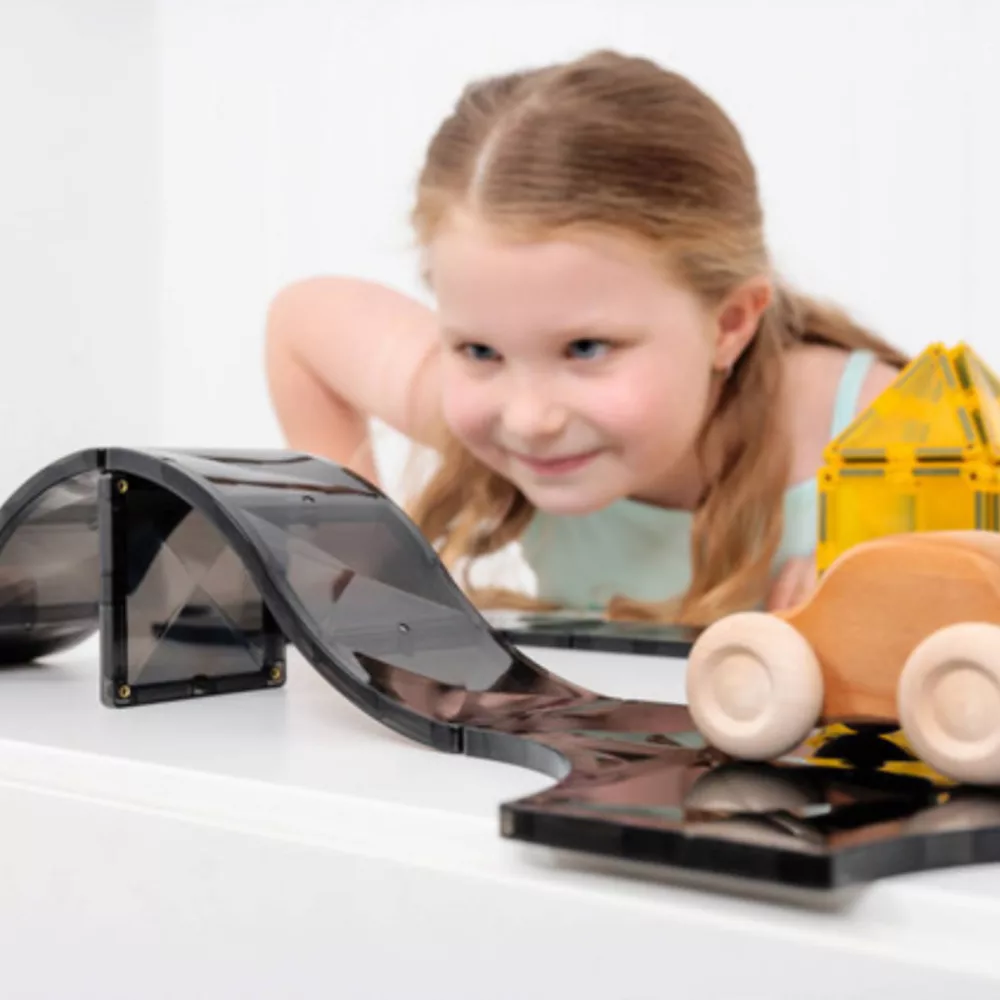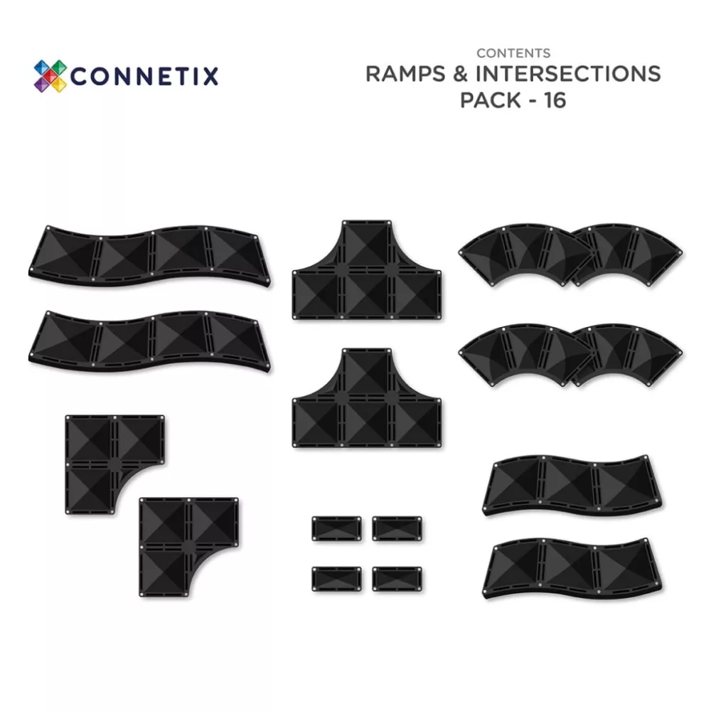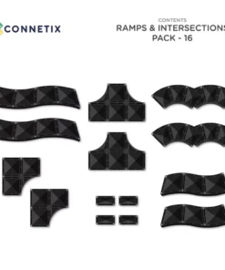 A Connetix Ramps & Intersections Pack 16 db mágneses építőelem lehetővé teszi, hogy a gyerekek végtelen kreatív pályákat építsenek, miközben játékosan fejlődik a logikai gondolkodás, a problémamegoldás és a finommotorika. A készlet modern, elegáns fekete elemeket tartalmaz, amelyekből kanyarok, T- és R-kereszteződések, valamint hosszú és rövid rámpák állíthatók össze, így a lehetőségek tárháza szinte határtalan.