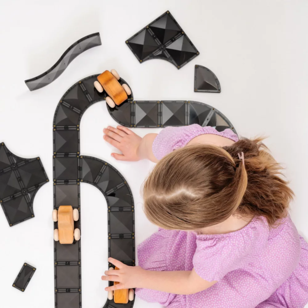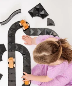 Ez a szett ideális nyílt végű játékhoz, ahol a gyerekek saját szabályaik szerint alkothatnak versenypályákat, hullámvasutakat, autós akadálypályákat vagy kreatív városi útvonalakat.
