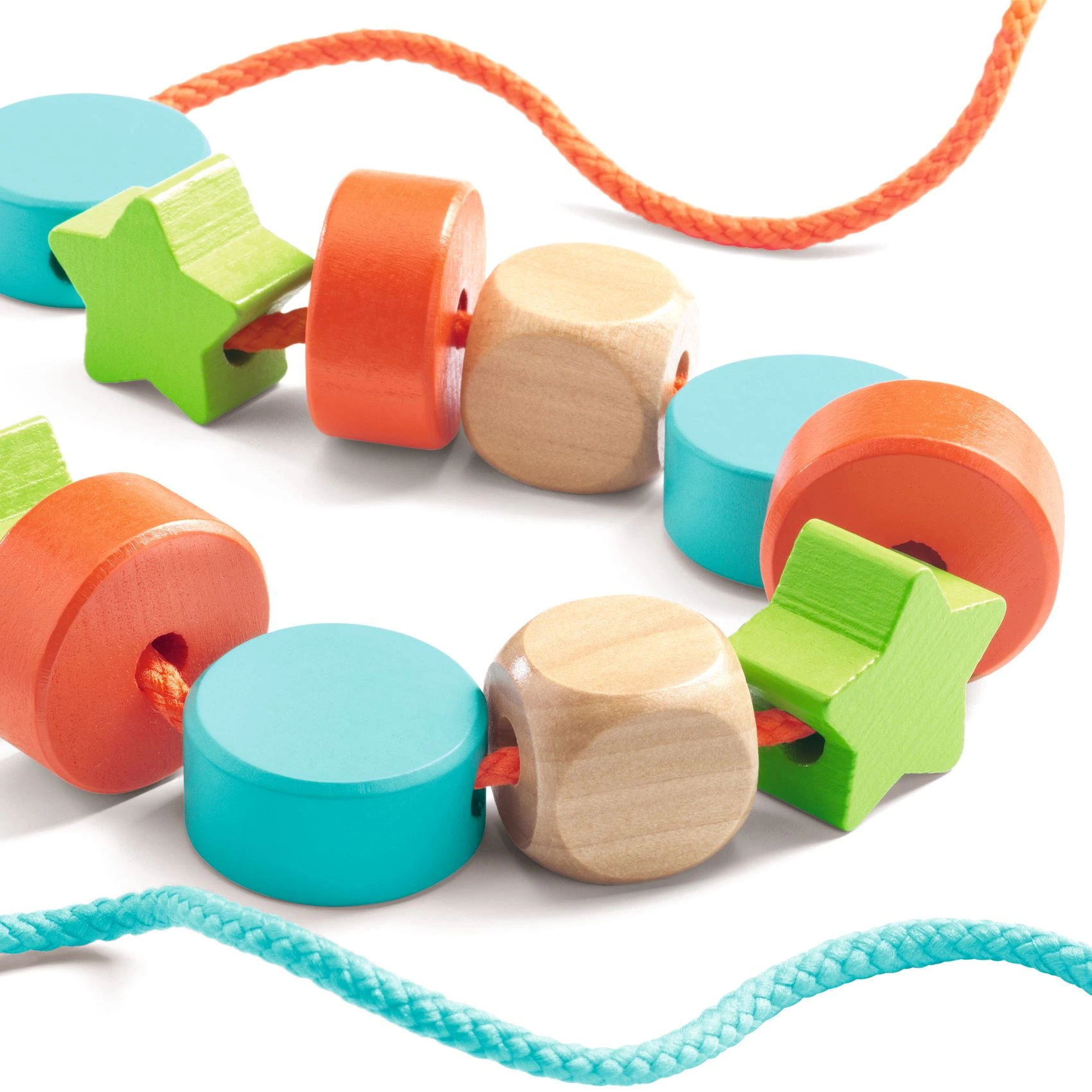 <p style=”text-align: justify;”>Alapformákat mintázó nagyméretű, fából készült gyöngyökből gyönyörű sorozatokat lehet felfűzni. Ez a szórakoztató tevékenység kézügyességet és koncentrációt igényel. Segíti a szem-kéz koordináció fejlődését. Rendkívül sokoldalúan használható.</p>