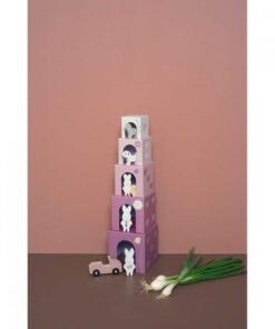 5 színes, egymásra rakható kocka 1-től 5-ig számozva, amely szórakoztató játékot nyújt a gyerekek számára. Minden egymásra rakható kockán két különböző motívum és egy szám található. A legnagyobb, 5-ös számú kocka körülbelül 15×15 cm. A játékkal egyszerű és szorakoztató módon lehet megtanulni a különböző állatok nevét és a számolás alapjait. A különböző kockákhoz aranyos állatfigurák is tartoznak, amelyekkel akár külön is játszhat gyermeke.