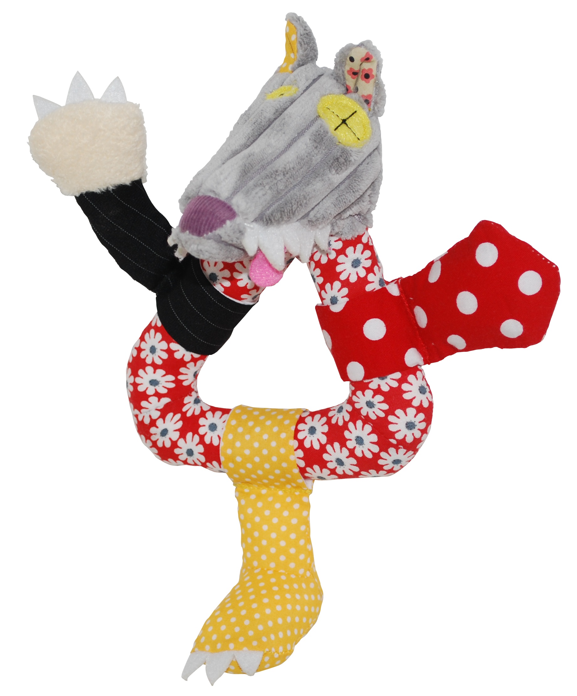 Háromszögűre formázott farkas, izgalmas, különböző textúrájú anyagokból, nyikorog, csörög, zörög. zizeg, és így tovább.