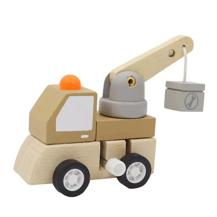 Fából készült felhúzható darus autó. Alapanyagának köszönhetően rendkívül tartós, ezért hosszú időre lesz a gyermek kedvence. A munkagépen található kart addig kell tekerni, ameddig az megfeszül és máris útjára indul a kis jármű. Méretéből adódóan könnyű megfogni és játszani vele. A remek szórakozás közben fejlődik a gyermek finommotoros készsége és szem-kéz koordinációja. Szerepjátékokra is kitűnő, amely szintén elengedhetetlen a gyermek egészséges fejlődéséhez.